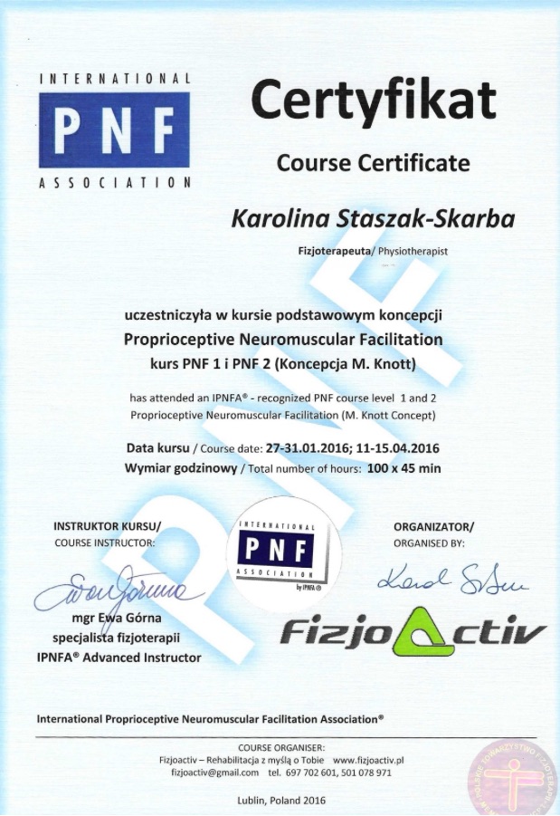 - Kurs Podstawowy koncepcji Proprioceptive Neuromuscular Facilitation