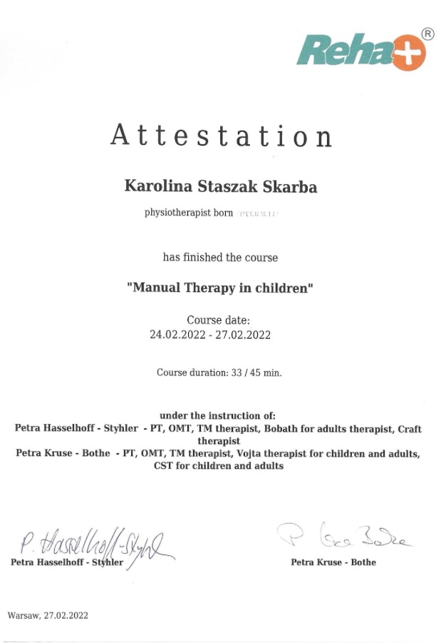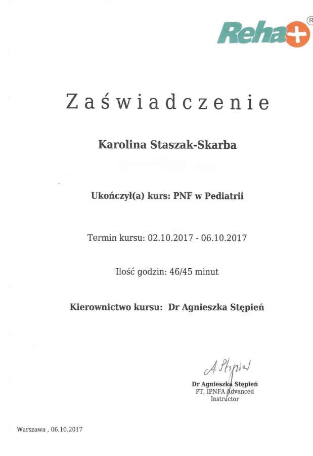 - Od 2017 r. prowadzi gabinet Reha Fun Karolina Staszak-Skarba.